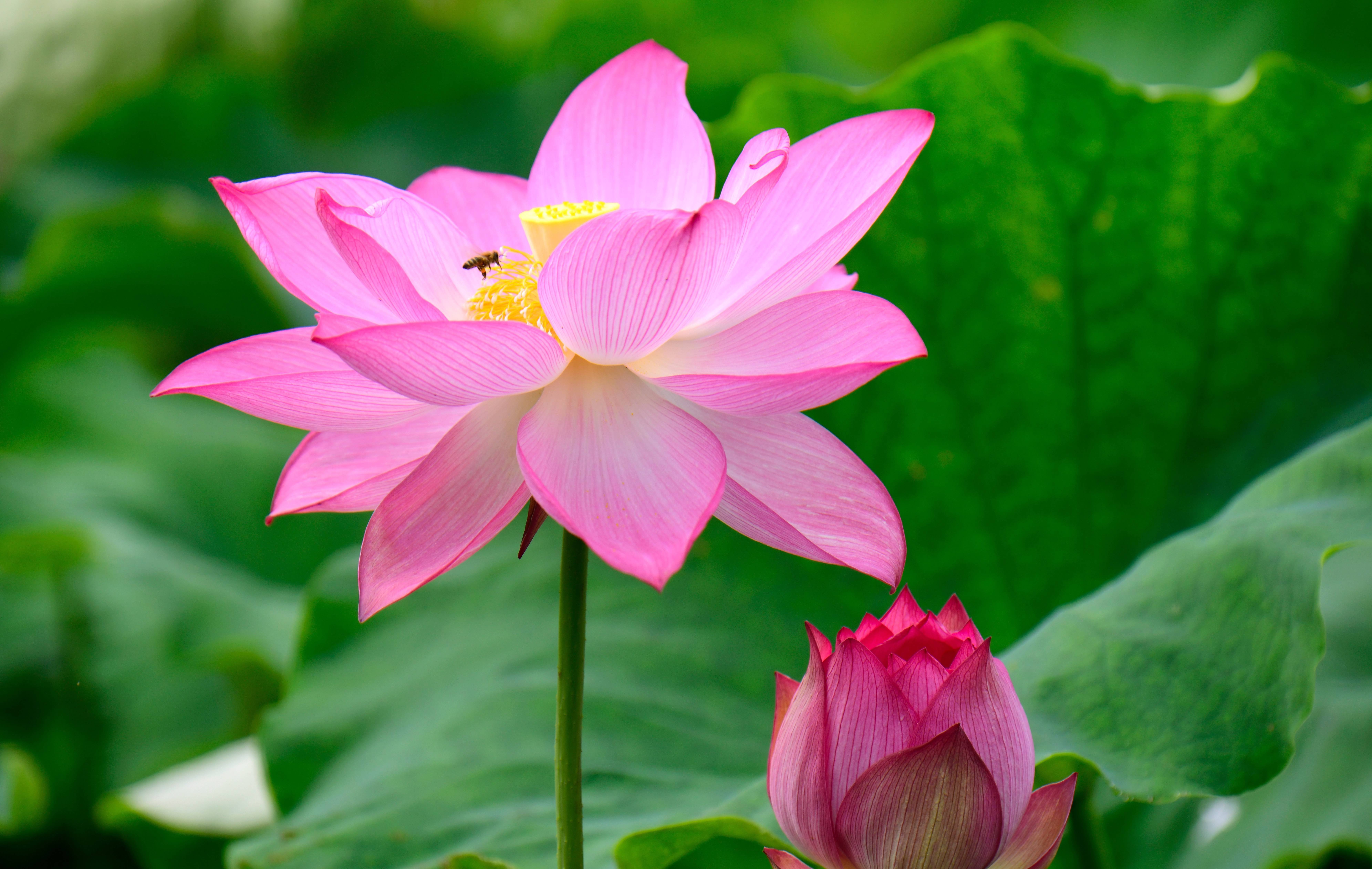 2025年6月8日,云南省弥勒市太平街道牛背村的荷花竞相绽放,吸引蜜蜂在花间飞舞,为夏日田园增添一道亮丽风景。